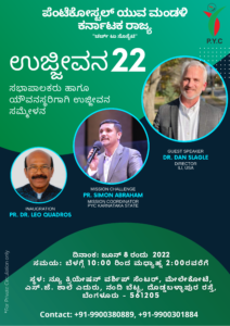 ബെംഗളൂരു: ‘സഭയിൽ നിന്നും സമൂഹത്തിലേക്ക്’ എന്ന ലക്ഷ്യത്തോടെ പ്രവർത്തിക്കുന്ന പെന്തക്കോസ്തൽ യൂത്ത് കൗൺസിൽ (പി.വൈ.സി) കർണാടക സ്റ്റേറ്റിൻ്റെ ആഭിമുഖ്യത്തിൽ ‘REJUVANATE – 22’ ഏകദിന കോൺഫറൻസ് നടത്തപ്പെടുന്നു. 2022 ജൂൺ 11 ശനിയാഴ്ച്ച രാവിലെ 9 മണി മുതൽ വൈകിട്ട് 4 വരെ ഹെണ്ണൂർ ഗദലഹള്ളി ഫെയ്ത്ത് സിറ്റി ഏ.ജി ചർച്ച് ഹാളിൽ വച്ചാണ് കോൺഫറൻസ് ക്രമീകരിച്ചിരിക്കുന്നത്.