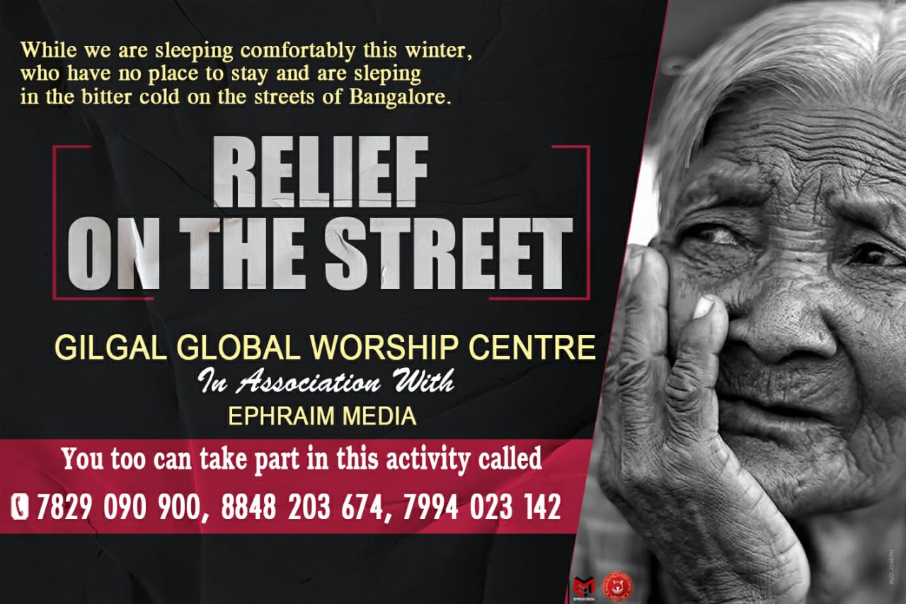 ബാംഗ്ലൂർ: ഗിൽഗാൽ ഗ്ലോബൽ വർഷിപ്പ് സെൻ്ററും എഫ്രയിം മീഡിയായും സഹകരിച്ച് ബാംഗ്ലൂരിൻ്റെ തെരുവിൽ കഴിയുന്നവർക്കും ചേരിപ്രദേശങ്ങളിൽ കഴിയുന്നവർക്കും ഈ തണുപ്പ് കാലത്ത് ആശ്വാസമായ് കമ്പിളി പുതപ്പുകൾ വിതരണം ചെയ്യുന്നു. മൂന്ന് ഘട്ടമായ് നടക്കുന്ന വിതരണം ബാംഗ്ലൂരിൻ്റെ വിവിധ ഏരിയകളെ കേന്ദ്രീകരിച്ചായിരിക്കും നടക്കുക. ഈ തണുപ്പുകാലത്ത് നാം സുഖമായി കിടന്നുറങ്ങുമ്പോൾ താമസിക്കുവാൻ ഇടമില്ലാതെ ബാംഗ്ലൂരിന്റെ തെരുവോരങ്ങളിൽ കഠിനമായ തണുപ്പിൽ കിടന്നുറങ്ങുന്നവർക്ക് ഒരു കൈത്താങ്ങായ് തെരുവിൽ ഒരു കരുതൽ എന്ന ഈ പ്രവർത്തനത്തിൽ നിങ്ങൾക്കും പങ്കാളികളാകാം…